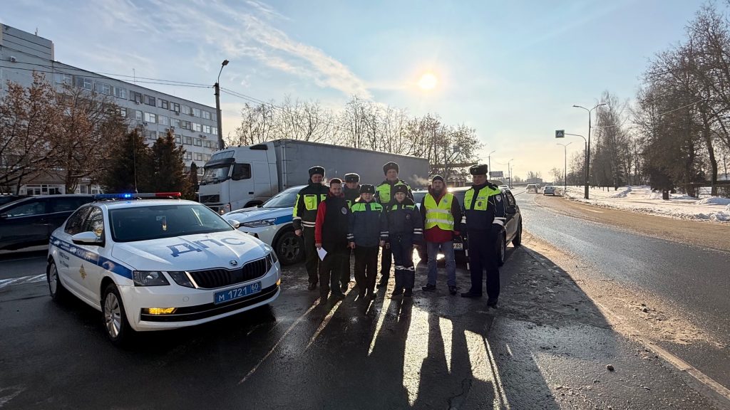 Представители Псковского регионального отделения ВОА вместе с инспекторами ГИБДД УМВД России по городу Пскову и сотрудниками Военной автомобильной инспекции вышли на зимние улицы города с особой миссией — поздравить мужчин-водителей с праздником.